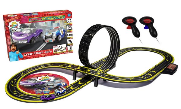 Úspěšný dětský YouTube kanál Ryans World má svůj vlastní Micro Scalextric závodní set. Ryanovo policejní auto pronásleduje auto závodníka jménem Dark Titan. Děti ocení skvělou zábavu a kaskadérskou akci na závodní dráze s možností až 9 variant rozvržení trati.