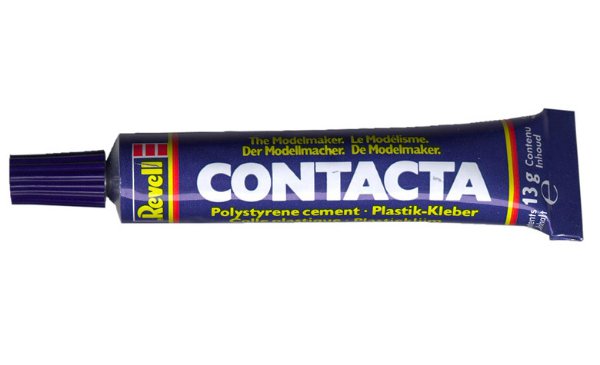Revell Contacta je gelové lepidlo v tubě. Jeho výhodou je to, že velké díly můžete přesně umístit ještě před tím, než lepidlo zaschne.