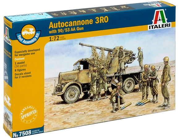 - Samohybný kanón 90/53 AA na podvozku automobilu Lancia 3RO v měřítku 1:72. Speciálně určeno pro hráče Wargame. Stavebnice obsahuje díly pro 1 vozidlo s kanónem, 8 figurek a obtisky pro dvě verze.