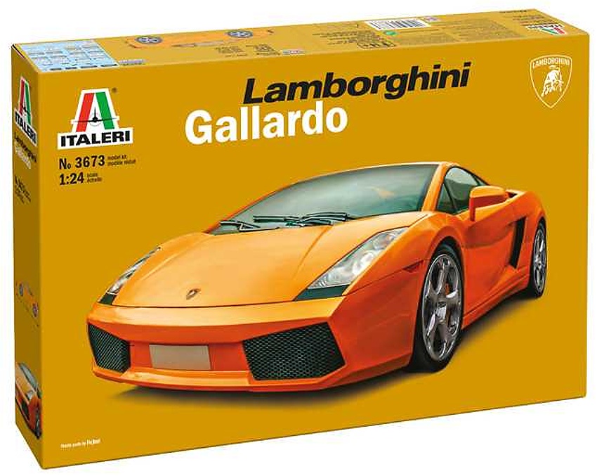 Model italského sportovního vozu Lamborghini Gallardo ke slepení. Měřítko: 1:24; Velikost: 17,9 cm.