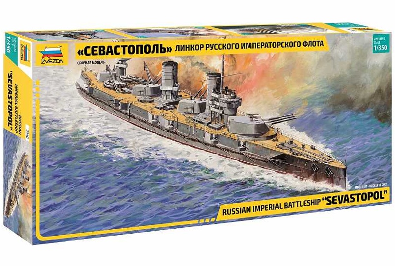 Model bitevní lodě Sevastopol ke slepení. Měřítko: 1:350; Velikost: 52 cm. Balení obsahuje: 432 dílků ke slepení.