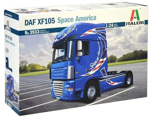 - Model trucku DAF XF105 Space America ke slepení. Měřítko: 1:24; Velikost: 24,5 cm. Balení obsahuje polepy pro 2 verze modelu.