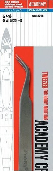 - Zahnutá ocelová pinzeta ze série Academy Craft Tools určená pro jemné práce.