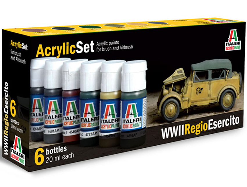 Sada vodou ředitelných barev WWII REGIO ESERCITO pro modely - 6 ks (po 20 ml).