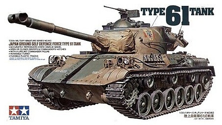 - Typ 61 představuje od konce 2. světové války první v Japonsku vyrobený hlavní bojový tank, zavedený do výzbroje od dubna roku 1961. Tato detailní plastiková stavebnice věrně zachycuje kompaktnost tohoto obrněnce, který byl navržen pro nasazení v poměrně stísněném prostředí japonského souostroví. Nezanedbatelnou výhodou tohoto tanku byla i možnost jeho přepravy po železnici. Stavebnice se může pochlubit realisticky zpracovaným 12,7mm kulometem, zadýmovacími granátomety nebo plachtovinou zakrývající masku kanónu. Nechybí autenticky zachycené detaily hlav šroubů a svárů.